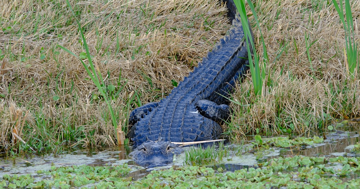 Alligator swimming in the marsh