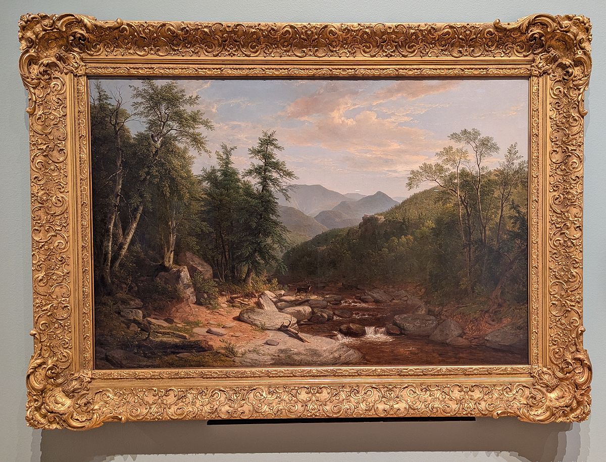 As you move through the gallery, you’re first greeted by portraits of early Americans—including the instantly recognizable George and Martha Washington. From there, the exhibit unfolds into a wide range of landscapes in different styles. One that caught my attention was by Asher B. Durand, who was trained by Thomas Cole, founder of the Hudson River School of painters (a little nod to my northern roots!).